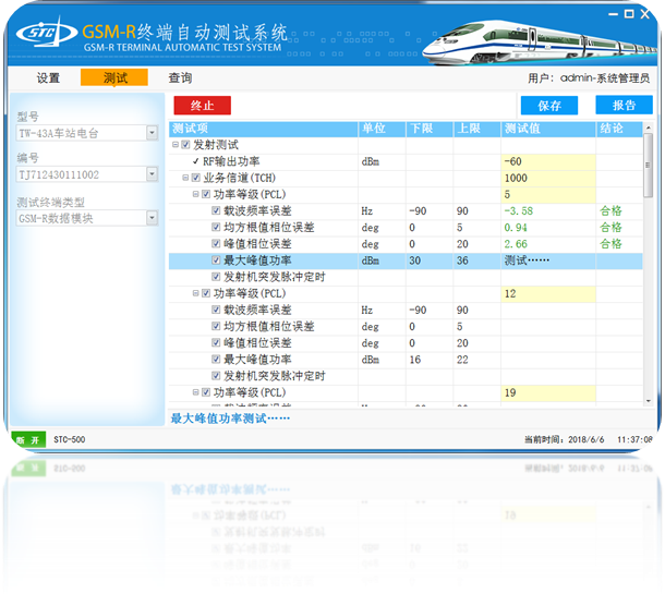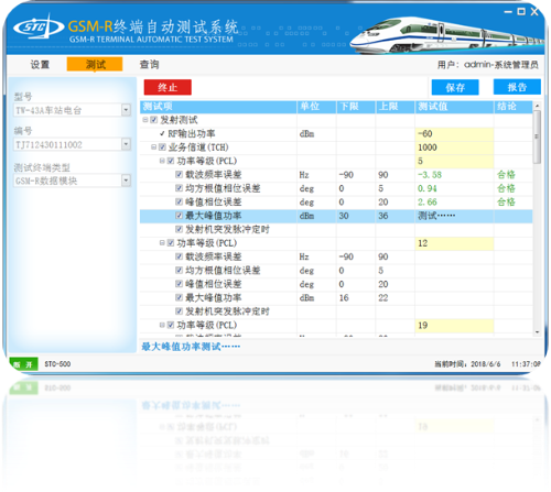 系统根据铁路实际测试需求,内置各项所需测试指标,但同时用户可以根据测试需要,自行选择相关测试指标,同时系统内置测试门限,自行判断测试结果是否合格