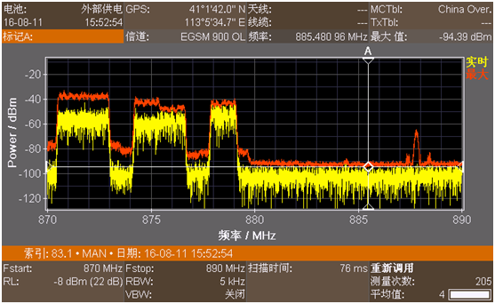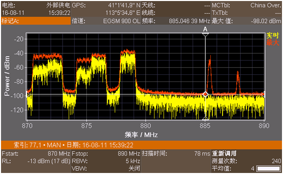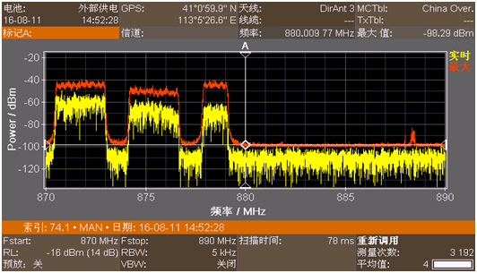 测试点频谱图(870MHz-890MHz)(站台空口测试)