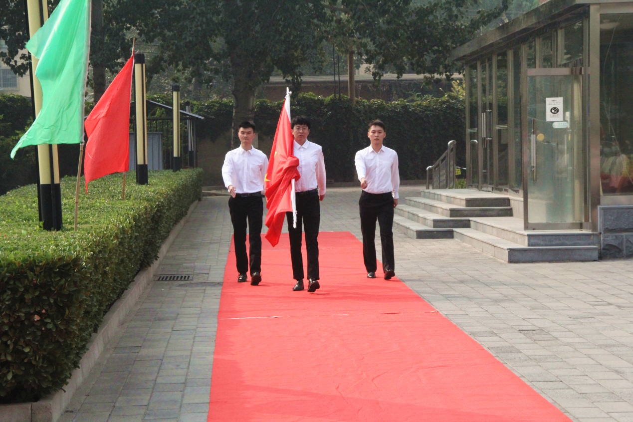 全体员工满怀着对革命先烈的崇高敬意和对祖国的美好祝愿,庄严伫立,齐唱国歌,注目鲜艳的五星红旗冉冉升起、迎风飘扬。