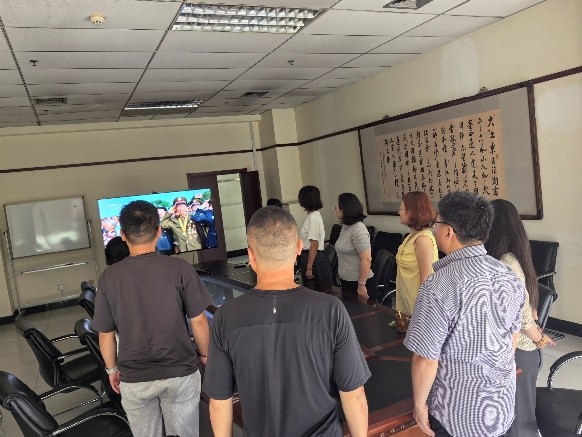 2025年9月3日上午,纪念中国人民抗日战争暨世界反法西斯战争胜利80周年大会在北京天安门广场隆重举行。为大力弘扬伟大抗战精神,进一步激发全体员工爱国情怀和使命担当,公司党总支精心组织全体党员及员工在园区会议室、报告厅、党员活动室和员工餐厅集中收看了大会现场直播盛况。公司党总支书记王智勇带领公司办公会领导一同观看了直播。